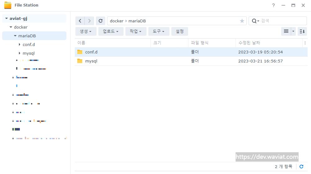 그 하위에 conf.d 와 mysql폴더를 같이 생성해준것을 기억한다면