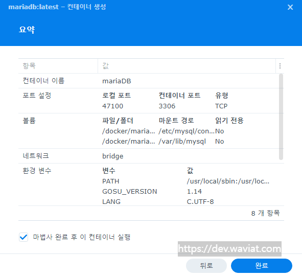 mariaDB 컨테이너 생성전에 먼저 할일이 있다.